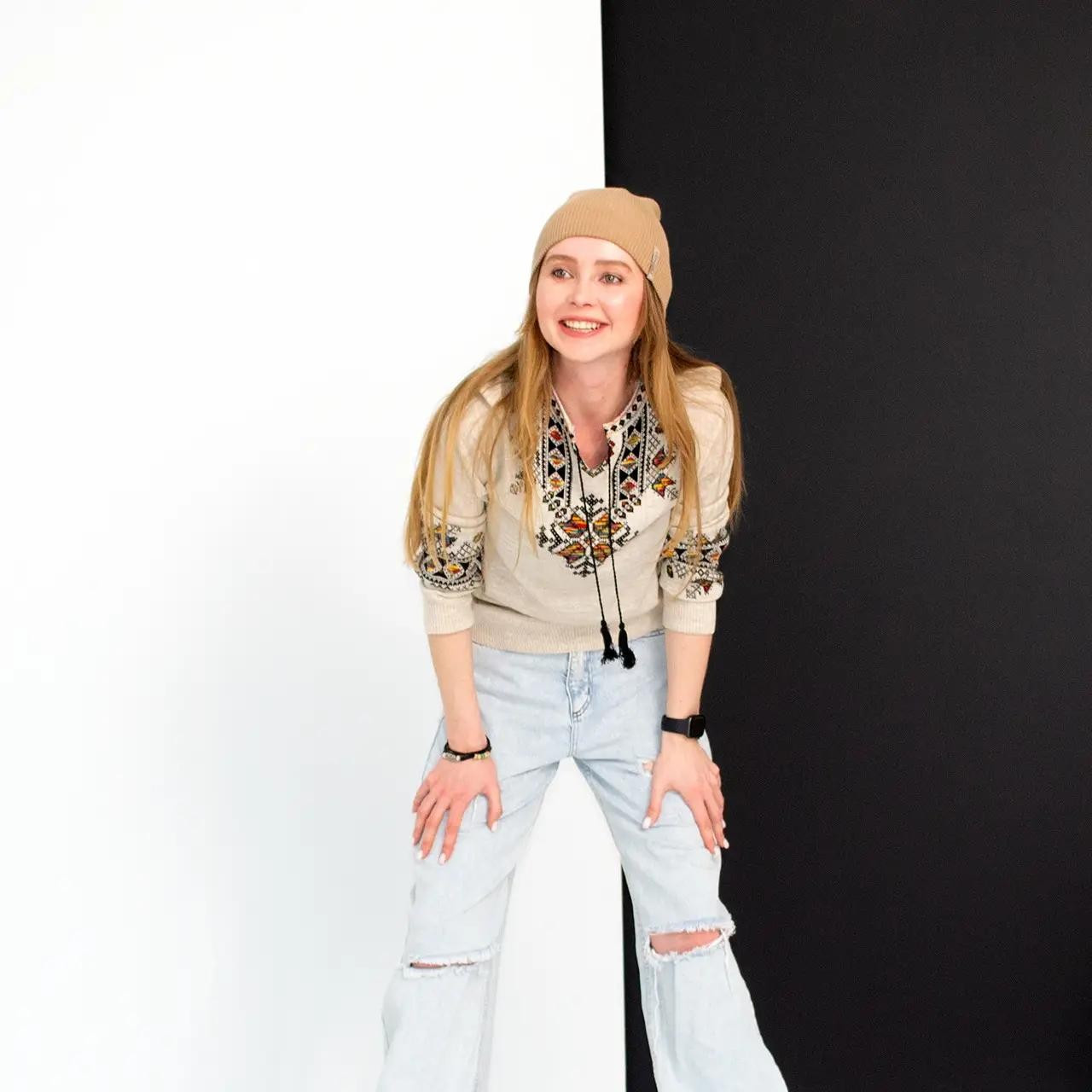 В'язаний светр вишиванка Moderika Зірка 44-48 бежевий з орнаментом